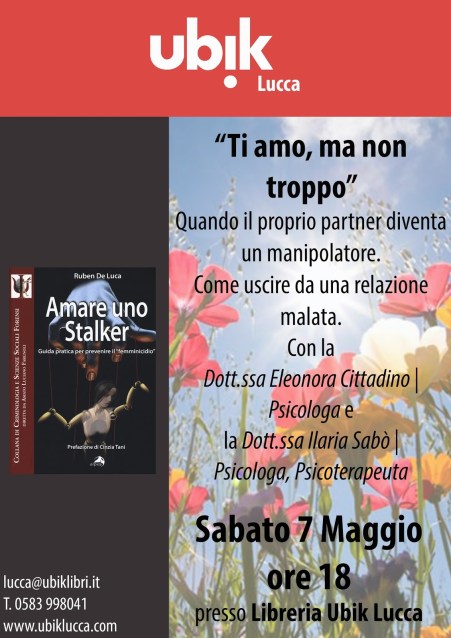 Senza categoria "Ti Amo, ma non Troppo" (incontro gratuito aperto a tutti) Pubblicato da Dott.ssa Eleonora Cittadino | Psicologa Psicoterapeuta il 3 Maggio 201615 aprile 2021 Vi aspettiamo Sabato 7 Maggio presso la Libreria Ubik Lucca per parlare di #amore, #Stalking, #manipolazione e #violenza INCONTRO GRATUITO APERTO A TUTTI Articolo La Gazzetta di Lucca (clicca per leggere l’articolo) Vota:Condividi: Fai clic per condividere su Facebook (Si apre in una nuova finestra) Facebook Fai clic per condividere su X (Si apre in una nuova finestra) X Fai clic qui per condividere su LinkedIn (Si apre in una nuova finestra) LinkedIn Fai clic per condividere su WhatsApp (Si apre in una nuova finestra) WhatsApp Fai clic per inviare un link a un amico via e-mail (Si apre in una nuova finestra) E-mail Mi piace Caricamento... Correlati